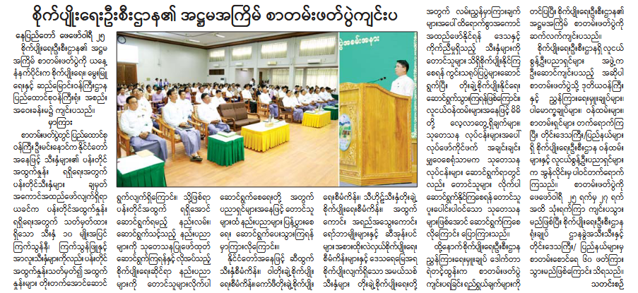 စိုက်ပျိုးရေးဦးစီးဌာန၏ အဋ္ဌမအကြိမ် စာတမ်းဖတ်ပွဲကျင်းပ