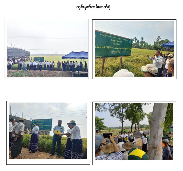 စိုက်ပျိုးရေးဦးစီးဌာန၊ သီးနှံကာကွယ်ရေးဌာနခွဲမှ ဦးဆောင်မှုဖြင့်  ဧရာဝတီတိုင်း.ဒေသကြီး၊ ..မအူပင်..မြို့နယ်၊ ဝါးတော/ထနီဒေါင့် ကျေးရွာ၊ ကွင်း/ဦးပိုင်အမှတ်. ၉၅၇၊ ၅၄/၂၊ တောင်သူ ..ဦးစန်းမြင့်..၏ စပါးသီးနှံ (၁၀) ဧက စိုက်ခင်းတွင် တောင်သူများပါဝင်သော ပိုးသတ်ဆေး ဓာတ်ကြွင်းကင်းစင်သည့် သီးနှံများစိုက်ပျိုးထုတ် လုပ်နိုင်ရေးအတွက် စတင်စိုက်ပျိုးသည်မှ ရိတ်သိမ်းပြီး သည်အထိ စိုက်ပျိုးရေးဆိုင်ရာအလေ့အကျင့်ကောင်းများ လိုက်နာကျင့်သုံးခြင်း၊ သီးနှံစိုက်တောင် သူများ အနေဖြင့် မိမိတို့၏ စိုက်ခင်းတွင် ပိုးမွှား၊ ရောဂါ၊ ပေါင်းကျရောက် မှုအား အမြဲမပြတ်ကြိုတင်ကင်းထောက်စစ်ဆေးခြင်း၊ အပင်သက်တမ်းအလိုက် ကျရောက် တတ်သော ဖျက်ပိုးများအား ဘက်စုံကာကွယ်နှိမ်နင်းနည်းများအသုံးပြု၍ကာကွယ်နှိမ်နင်းခြင်း၊ ပိုးသတ်ဆေးကိုလိုအပ်မှ သာ အသုံးပြုခြင်း၊ ပိုးသတ်ဆေးအုပ်စု တစ်မျိုးထဲကို ဆက်တိုက်မသုံးစွဲဘဲ အခြား ပိုးသတ်ဆေးအုပ်စုများနှင့် အလှည့် ကျပြောင်းလဲအသုံးပြုခြင်း၊ သုံးစွဲမှုအကြိမ်အရေအတွက် လျော့ချခြင်း၊ အဝါရောင်နှင့် အပြာ ရောင်ပိုး ဖမ်းထောင် ခြောက်များအသုံးပြုခြင်း၊ ပိုးသတ်ဆေးဖျန်းပြီးနောက် သီးနှံ ရိတ်သိမ်း /ခူးဆွတ်ရန် စောင့်ဆိုင်းရမည့် ကာလ (Pre  Harvest Interval – PHI) တို့အား တိကျစွာလိုက်နာ၍ ပညာပေးစံပြကွက် ဆောင်ရွက်ခဲ့သည့်အပေါ် တောင်သူများ လိုက်နာ လက်ခံကျင့်သုံးနိုင်ရေးအတွက်  (၃-၄-၂၀၂၆) ရက်နေ့ နံနက်ပိုင်း က ကွင်းသရုပ်ပြပွဲ ကျင်းပခဲ့သည်။