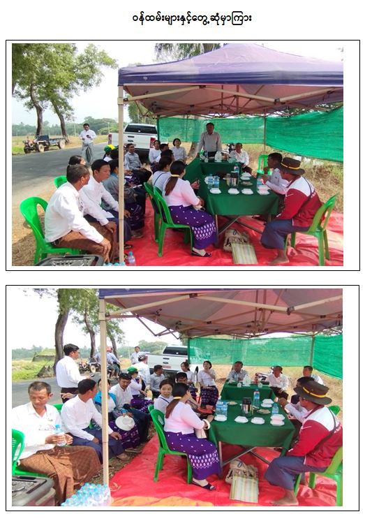 ၎င်းနောက် ဧရာဝတီတိုင်းဒေသကြီး၊ မအူပင်ခရိုင်စိုက်ပျိုးရေးရုံးနှင့် မြို့နယ်စိုက်ပျိုးရေးရုံးမှ ဝန်ထမ်း များနှင့် တွေ့ဆုံကာ တင်ပြချက်များအား ပေါင်းစပ်ညှိနှိုင်းဆောင်ရွက်ပေးခဲ့ပါသည်။